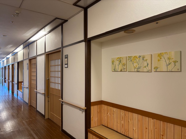 囲炉裏や廊下等の館内には襖絵師の島田由子氏の掛画が38枚展示されており、館内全体が美術館のような雰囲気があります。